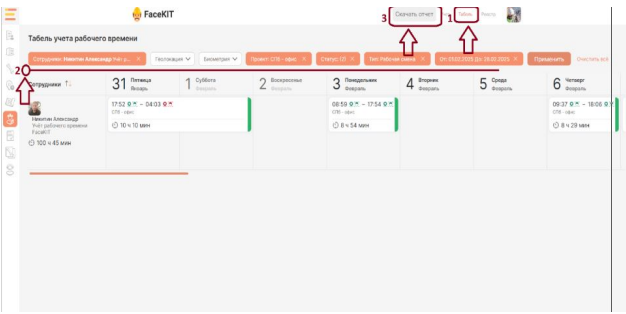 Просмотр табеля рабочих смен в веб-версии: инструкция со скриншотами