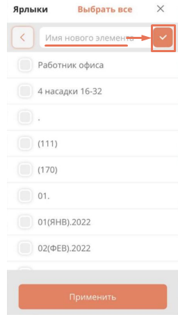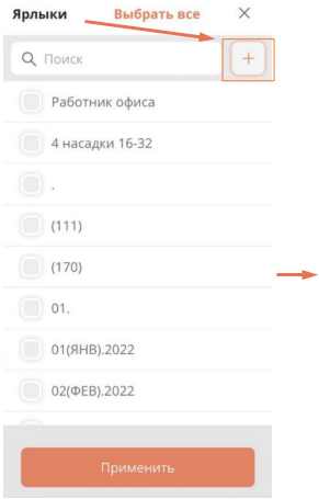нажмите «+» в строке «Ярлыки». |