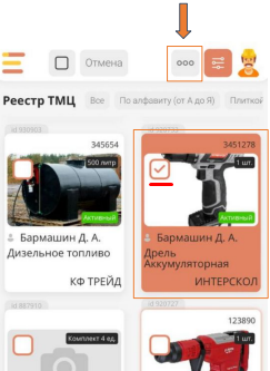 Откройте нужную карточку ТМЦ, нажав на неё.
