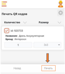 | 2. | В открывшемся окне нажмите «Печать QR кодов» | |