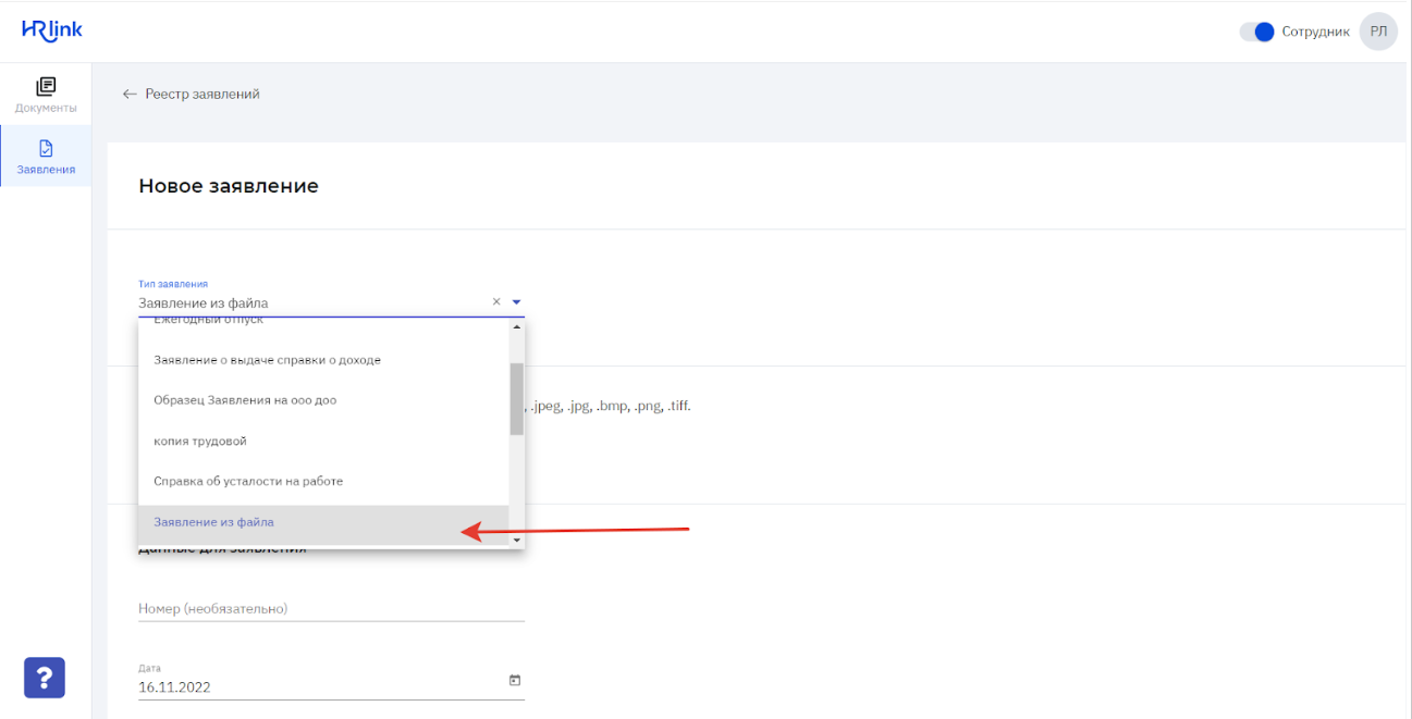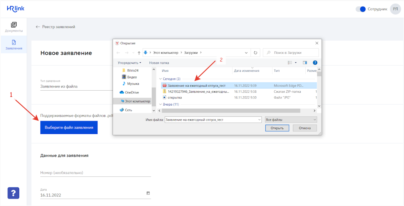 загрузить заявление из файла на мобильном устройстве.
