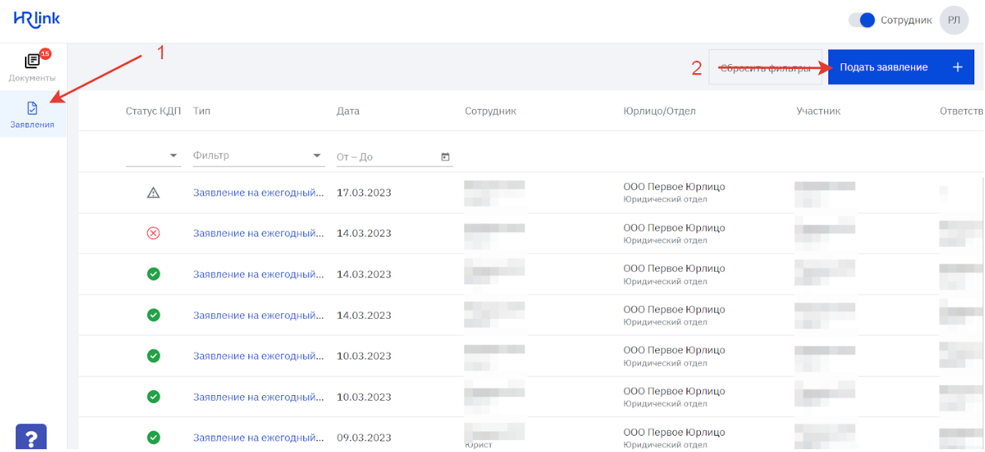 - Перейдите в реестр заявлений и нажмите кнопку "Подать заявление".